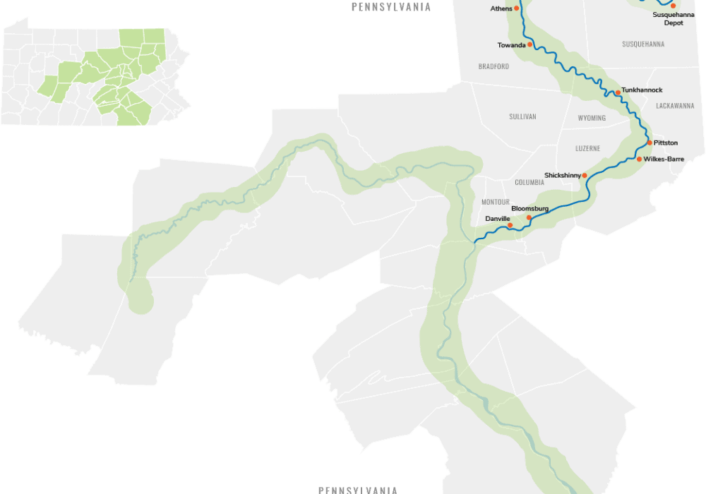 In addition to abundant outdoor recreation, this section also boasts Classic Americana communities like Towanda, Laceyville, Tunkhannock, Shickshinny, Bloomsburg, and Danville, as well as thriving urban areas like Pittston and Wilkes-Barre.