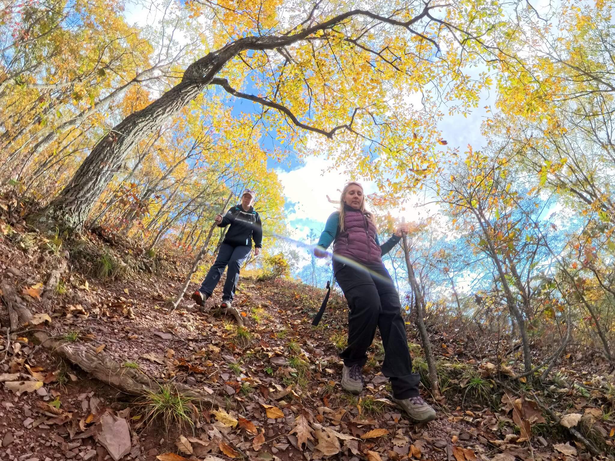 It has been noted that the trail blazes can be difficult to follow, so please be sure to keep a copy of the trail map handy. You may print the version below, or take a photo of the kiosk available at the trailhead. The AllTrails app is also helpful to ensure you stay on the path. There are also a few very steep sections where a hiking stick or trekking poles may be helpful.