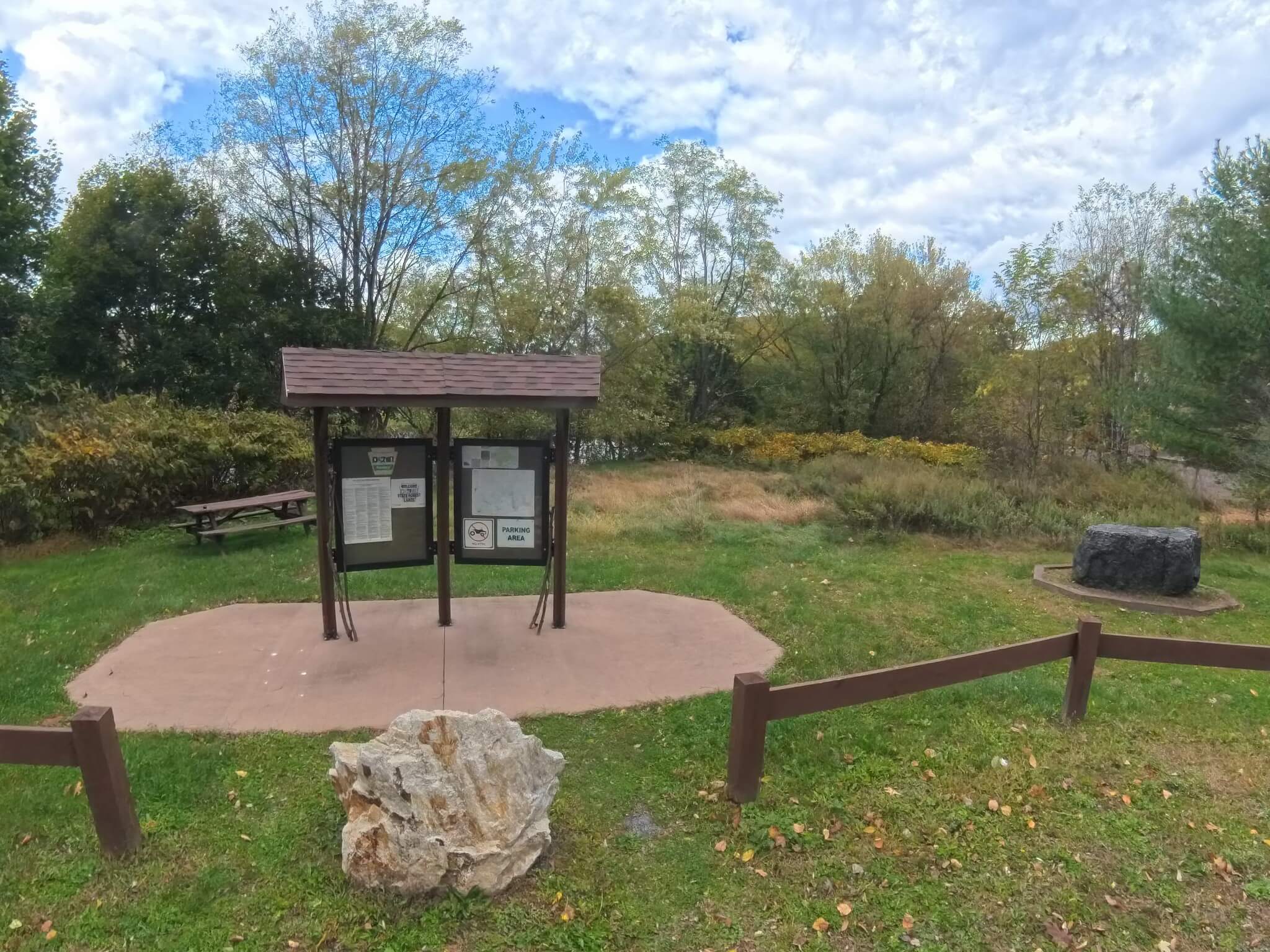 Parking and the system’s trailhead can be found off of Main Street in Mocanaqua near the sewer authority. To access the trailhead from the parking lot, walk through the railroad crossing and turn left. Continue forward past the gated area and follow trail signs. A clockwise loop is recommended.