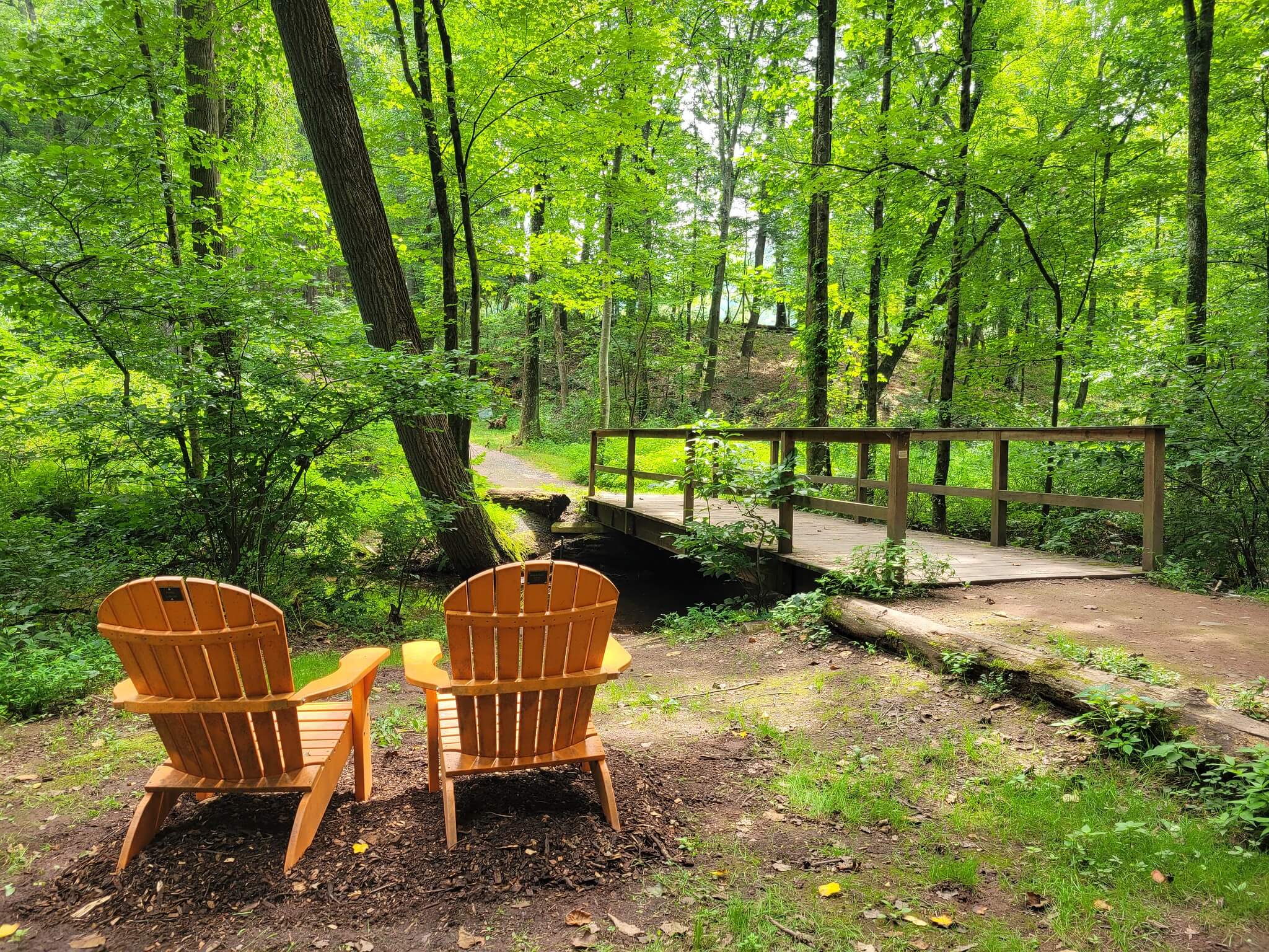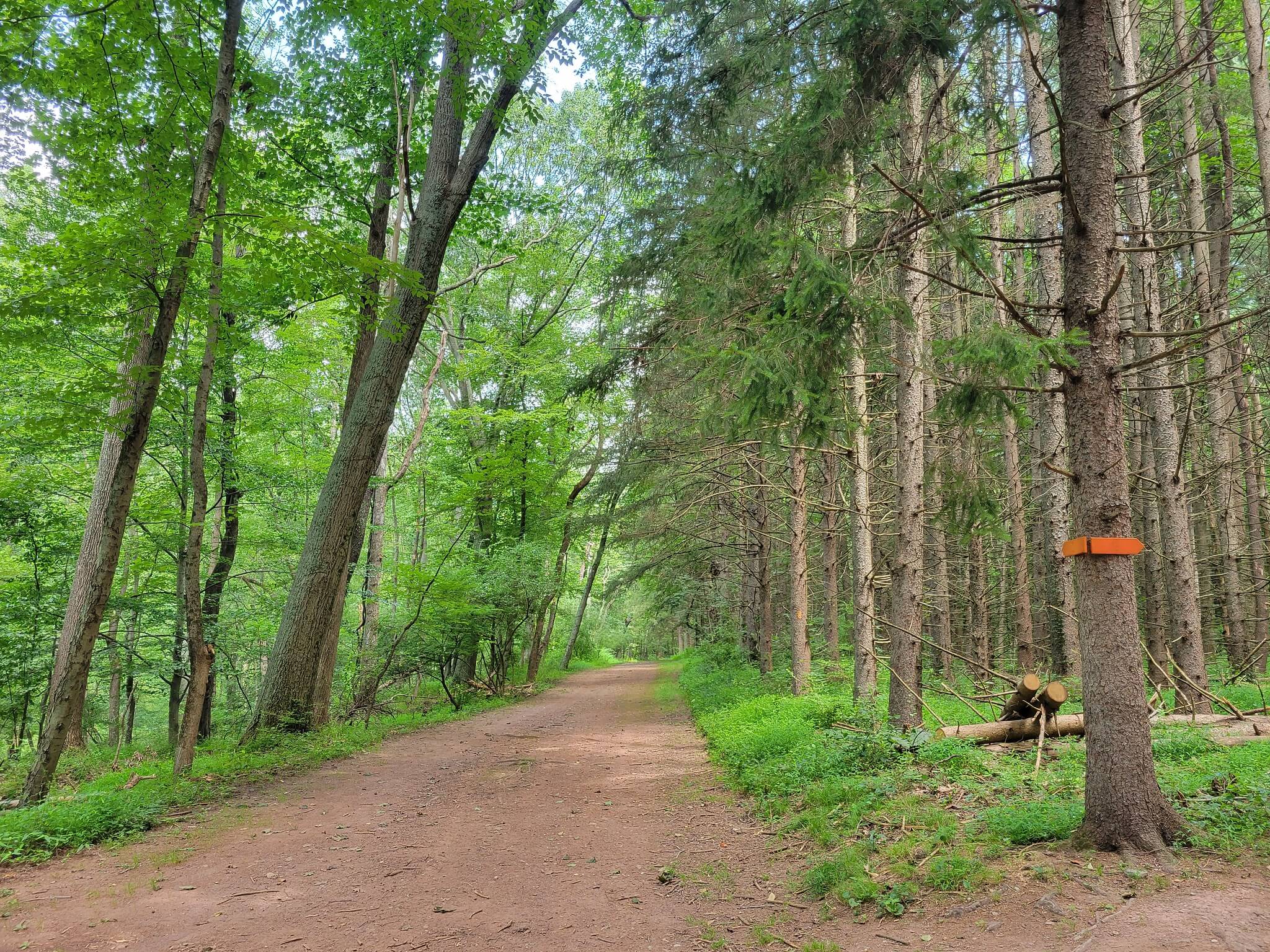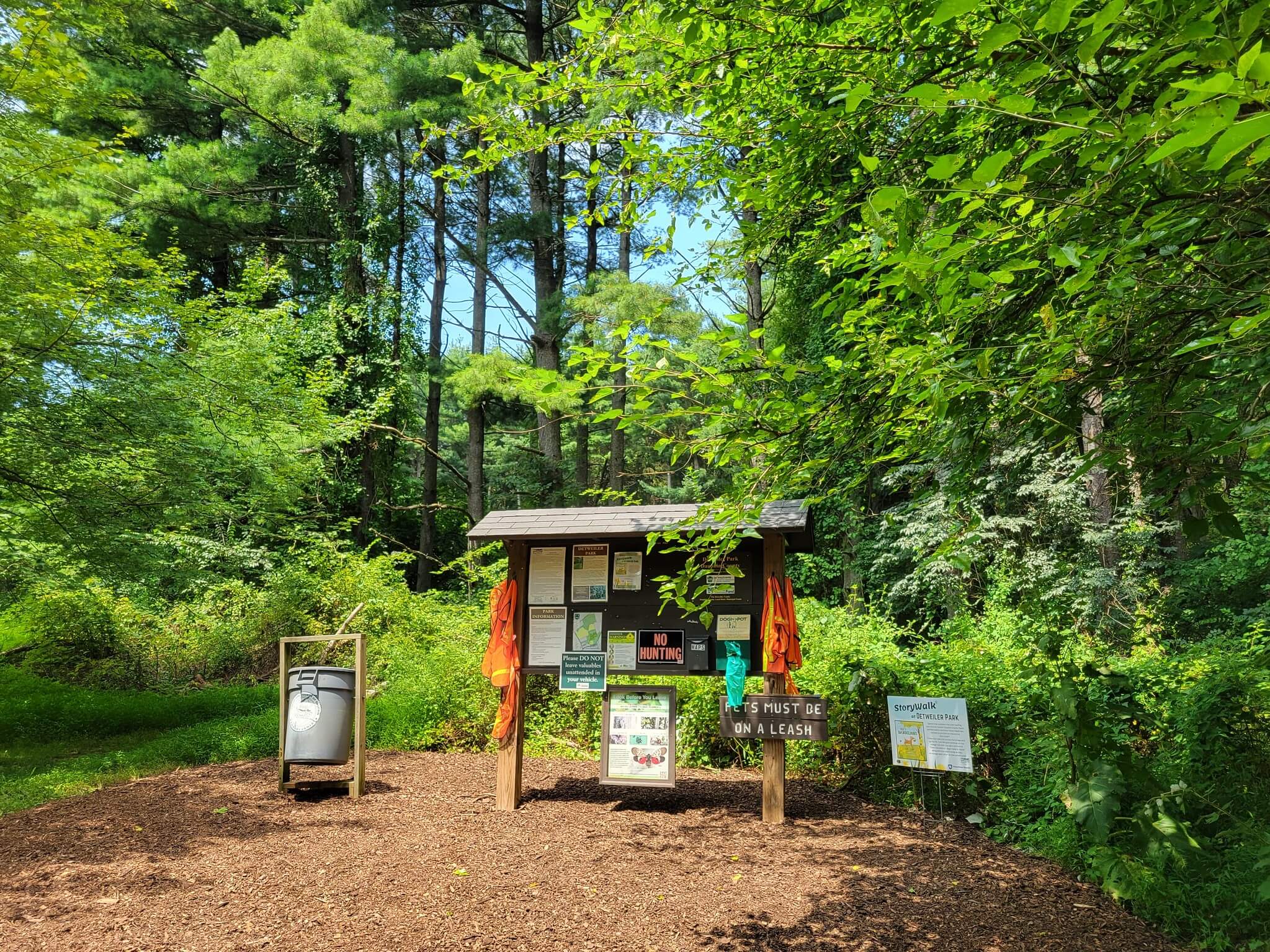 Detweiler Park can be accessed via a parking lot located at 1451 Peters Mountain Road, Dauphin, PA 17018. From US 322, take the Peters Mountain Rd (SR 225) exit, and the parking lot will be 1.8 miles ahead on the right. This parking area provides access to Stackpole Trail, which leads into the main trails of the park. There are no restrooms at the trailhead, but porta potties are available at the first main trail junction after the creek bridge crossing.