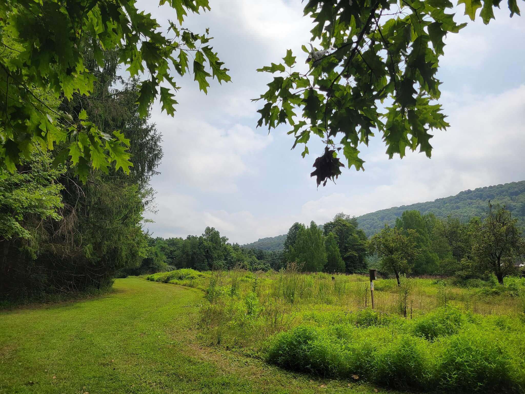 The Dogleg Loop circles the old Detweiler residence. Various songbirds can be heard in the meadow and stream habitats, and American holly grows along the south side of the loop. The southeast section of the trail holds water from springs making this area very wet for the majority of the year. It meets the Stackpole Trail near the bridge and joins the southwest corner of David’s Field Loop.