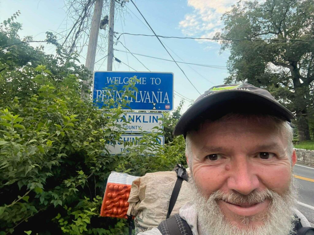 John Mosso crosses into Pennsylvania on his Appalachian Trail thru-hike.