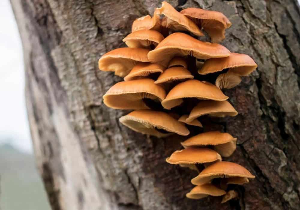 Mushrooms or “toadstools” are the fruiting bodies of a fungus. Their umbrella like structures are often seen poking out of the ground, from a fallen tree, or another of their food-sources.
