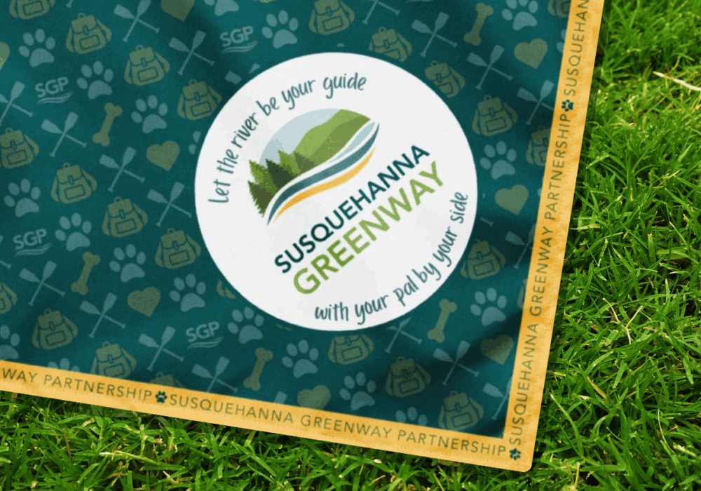 Perfect for trail walks, riverside picnics, or your next paddling trip, this bandana is a fun and functional way to show your shared love for the outdoors. Whether you’re chasing sunsets or squirrels, let this be your go-to gear for every tail-wagging journey along the Susquehanna!