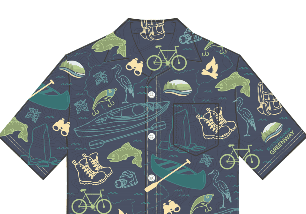 Get ready to don some serious aloha vibes with our Susquehanna Greenway-themed Hawaiian shirt. Whether you choose to hike, bike, or paddle–this smooth, UV-resistant, stretchy, and breathable fabric will keep you looking and feeling cool during any outdoor adventure.