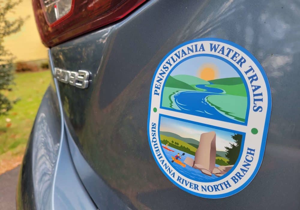 The Susquehanna River Water Trail – North Branch has a new logo! Represent this branch of the river and support the water trail by purchasing a magnet. It’s a great way to show your river pride right on your car or trailer. Want to slap one on your kayak or paddle? The logo is also available in stickers!