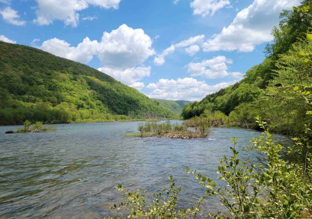 This day trip is good for most skill levels. It is an ideal trip for an immersive nature experience, as it is located alongside a section of the Water Trail known for its state parks and natural areas. European settlers were drawn to this region because of its abundance of natural resources. While it was largely harvested in the mid-1800s, the area is now lush with new-growth forests. Please note, there are no public access points between Hyner Access and Baker Run Canoe Launch. The river follows Route 120 (Bucktail Scenic Byway) for this section, occasionally running adjacent to Bucktail State Park Natural Area.